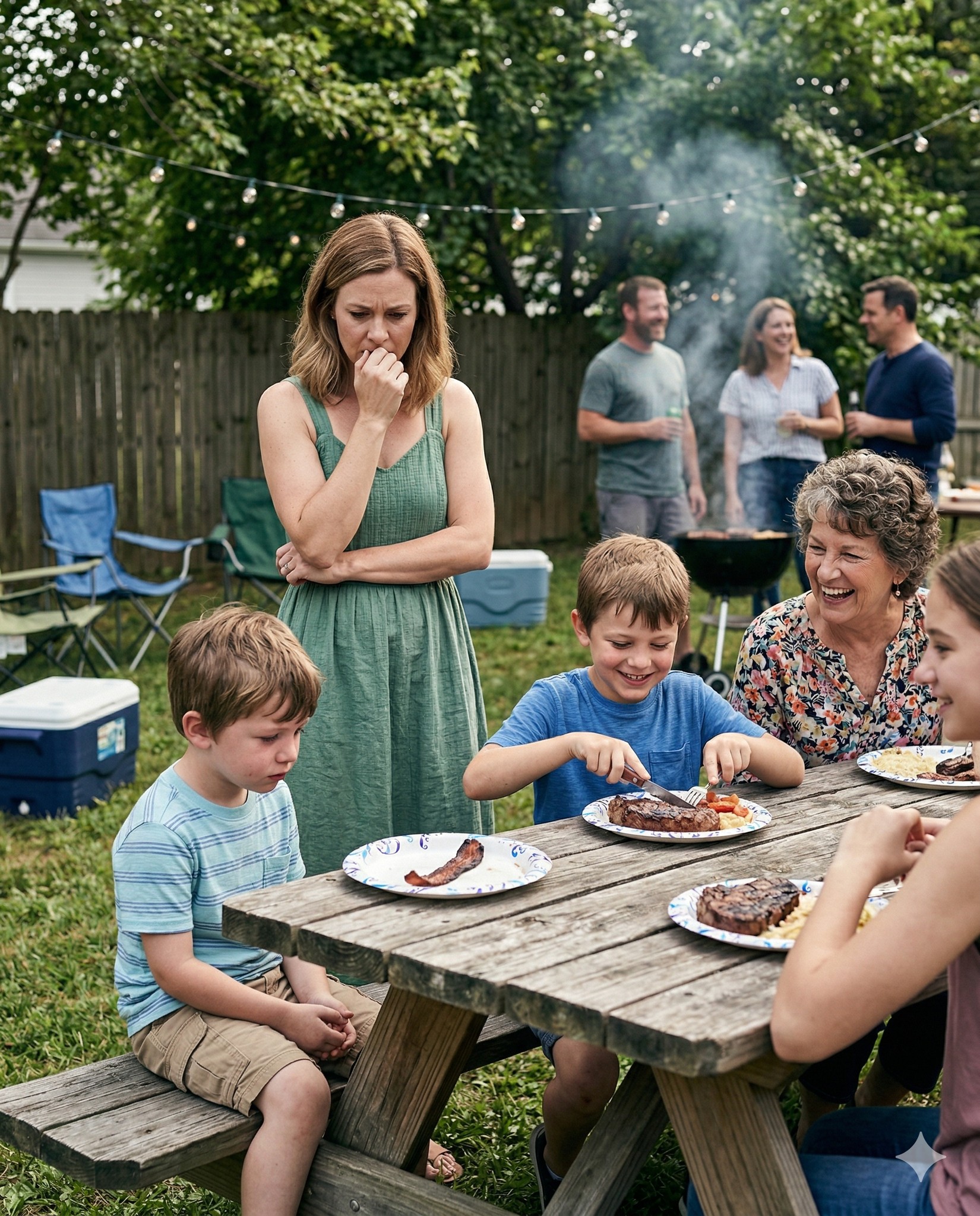 Bei einer Familienfeier bekam mein Neffe ein dickes, perfekt gebratenes T-Bone-Steak – perfekt zubereitet und noch saftig –, während mein Sohn etwas bekam, das kaum noch als Essen durchging. Ein verbrannter Fettstreifen, an den Rändern schwarz und in der Mitte schlaff, landete achtlos auf einem Pappteller.