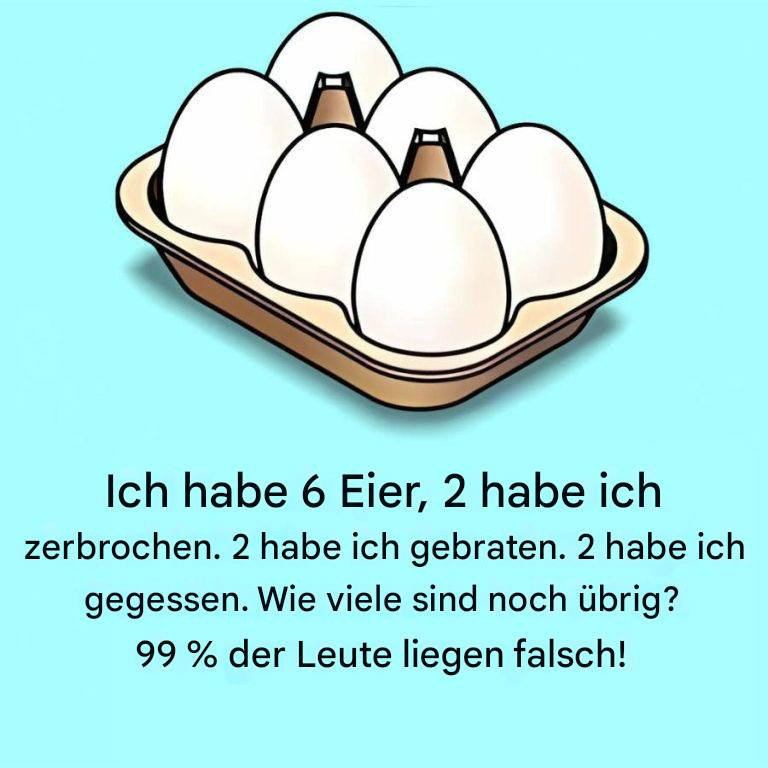 Stellen Sie sich vor, Sie stehen vor 6 Eiern. Wie viele bleiben Ihnen eigentlich übrig, nachdem Sie 2 zerbrochen und gekocht haben? Tauchen Sie ein in dieses scheinbar einfache Rätsel mit überraschenden Antworten …