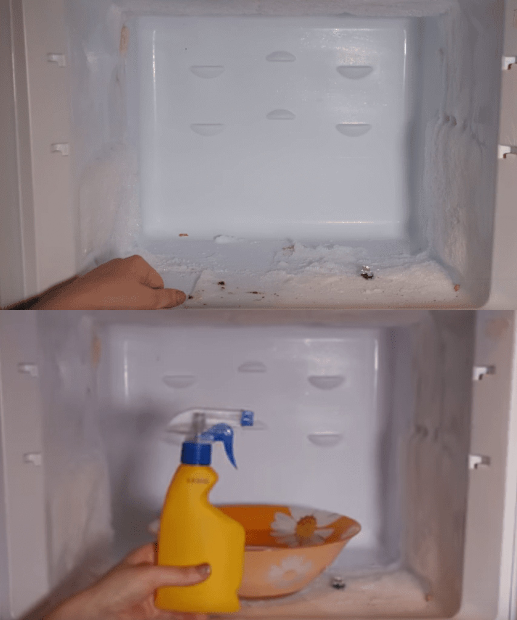 Geben Sie die resultierende Kochsalzlösung in eine Sprühflasche und sprühen Sie sie vorsichtig auf die Wände des Gefrierschranks. Ein paar Minuten genügen und das Eis beginnt allmählich zu verschwinden. Sie können es anheben, z.B. mit hölzernen Sushi-Stäbchen – so beschädigen Sie die Kühlschrankoberfläche garantiert nicht.