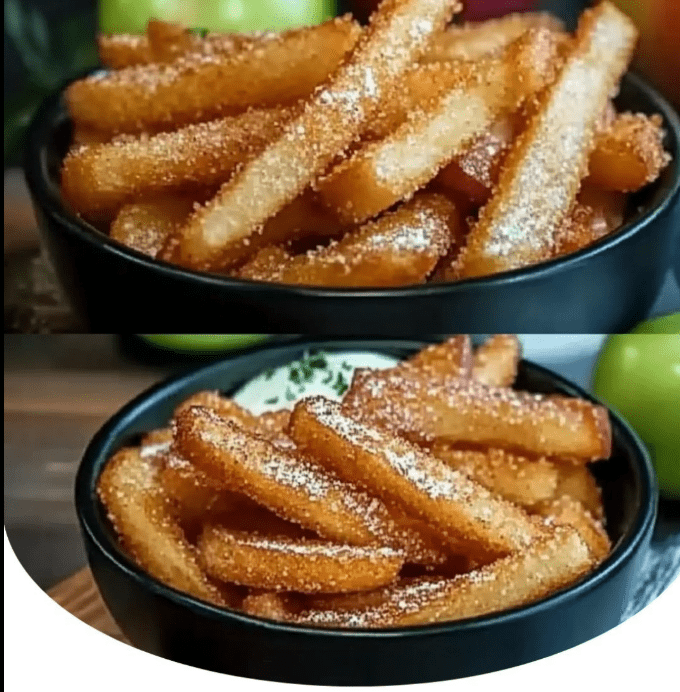 Diese Apfelpommes sind außen herrlich knusprig und innen zart und ein gesunder, unterhaltsamer Leckerbissen, der sich perfekt als Snack oder Dessert eignet!”