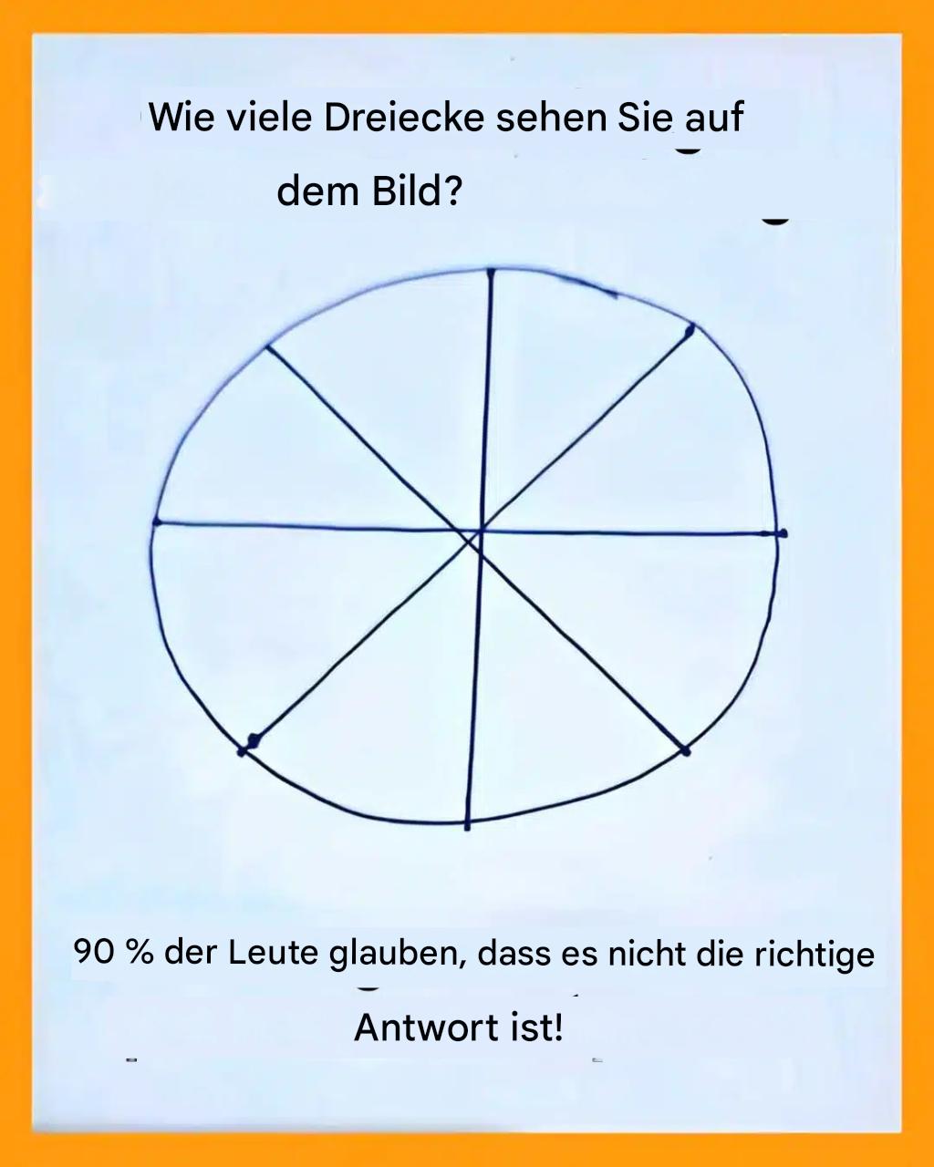 Er ähnelt einem symmetrisch geschnittenen Kuchen. Ein Kreis, vier gerade Linien, die sich in der Mitte schneiden, und eine einfache, handgeschriebene Frage: « Wie viele Dreiecke? » « Einfach, oder? Und doch… Dieses kleine visuelle Puzzle, das mit hoher Geschwindigkeit durch die Netze zirkuliert, stellt selbst für die aufmerksamsten Köpfe eine Herausforderung dar. Sind Sie bereit, die Herausforderung anzunehmen?
