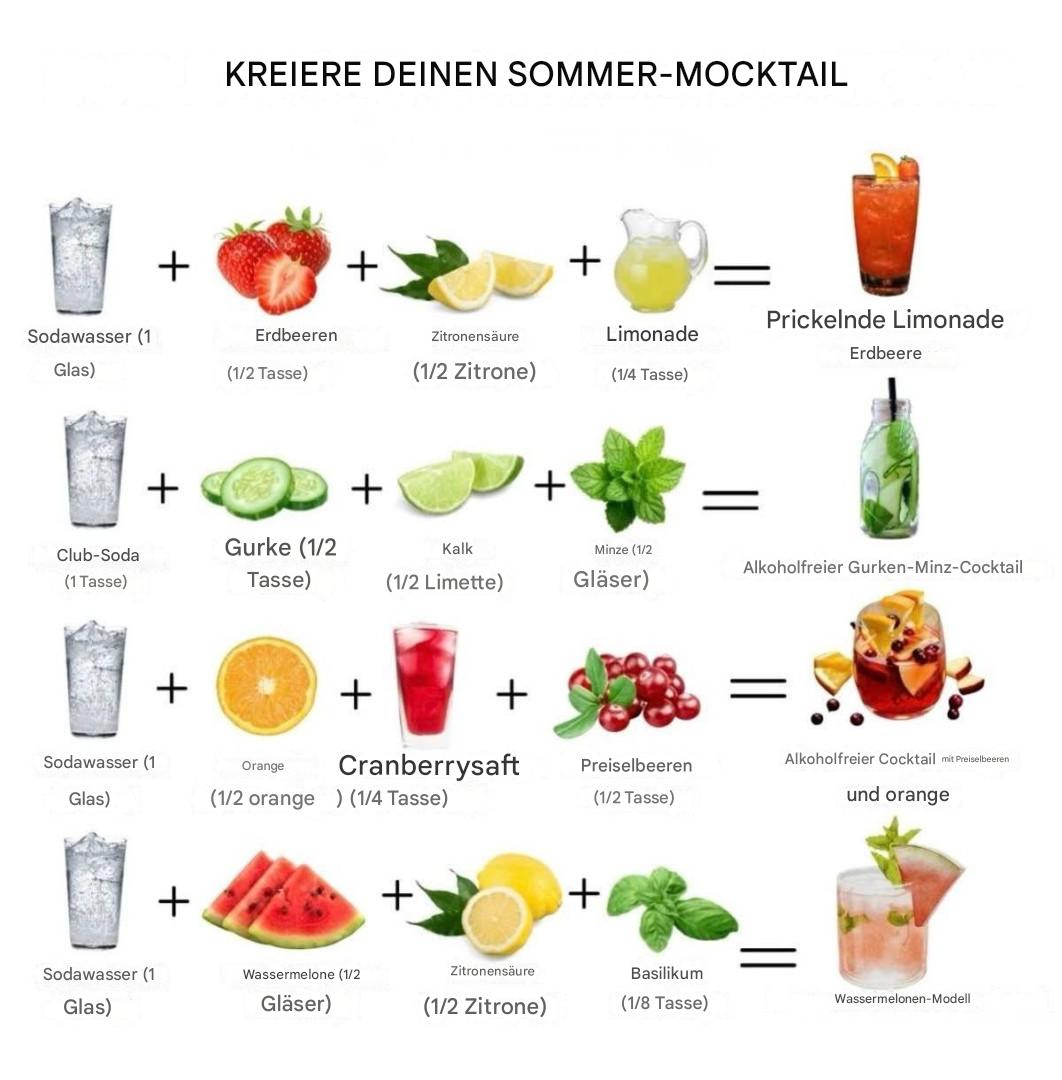 Wenn die Temperaturen steigen, gibt es nichts Besseres als einen leichten, aromatischen, alkoholfreien Cocktail zur Abkühlung. Hier sind vier einfache und erfrischende Rezepte für alkoholfreie Cocktails, die Sie in wenigen Minuten zubereiten können!
