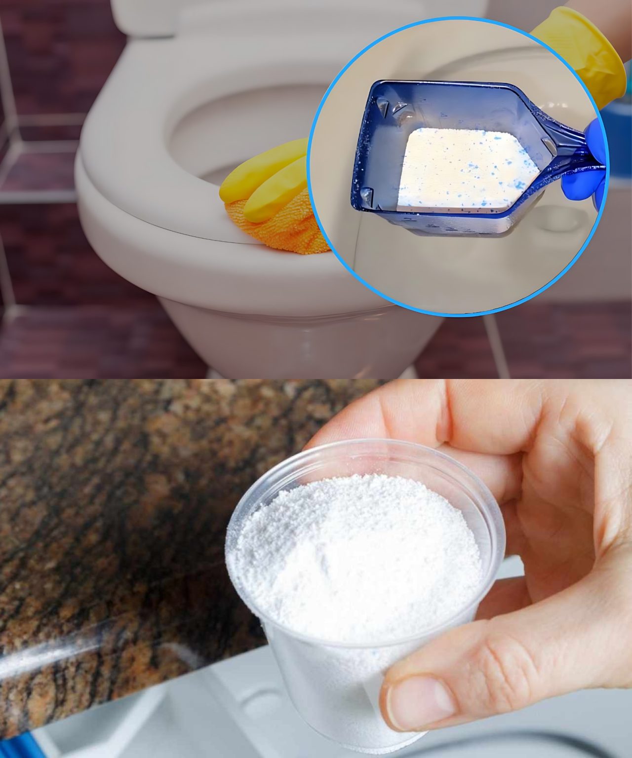Streuen Sie einen Messbecher Pulverwaschmittel in die Toilettenschüssel.