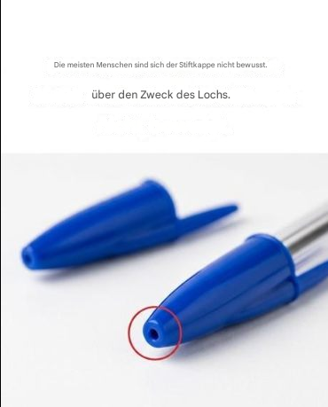Viele wissen auch nicht, dass dieses kleine Loch eine wichtige Rolle für die Funktion des Stifts spielt. Es hilft, den Luftdruck im Inneren des Stifts zu regulieren.