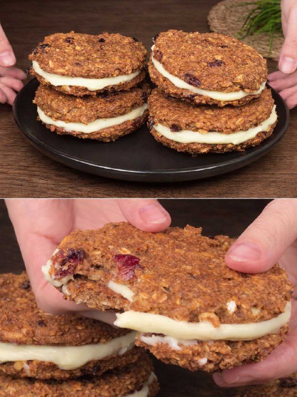 So begann ich, diese gefüllten Haferflockenkekse zu backen, teils aus Notwendigkeit, teils aus Neugier. Ich wollte etwas Süßes, aber nicht zu Süßes, etwas, das mich satt macht, ohne dass ich mich danach überfressen fühle. Haferflocken mit ihrem Beta-Glucan-Gehalt helfen, die Zuckeraufnahme zu verlangsamen und den Cholesterinspiegel zu verbessern. Die selbstgemachte, leicht reichhaltige Creme rundet das Ganze ab und macht den Keks auch geschmacklich zu einem Genuss. Der Duft beim Backen ist dezent, fast beruhigend, und die Konsistenz bleibt selbst am nächsten Tag noch weich.